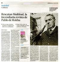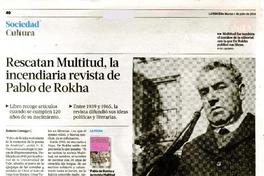 Rescatan Multitud, la incendiaria revista de Pablo de Rokha [artículo] / Roberto Careaga C. La Tercera (Diario : Santiago, Chile)-- jul. 01, 2014, p. 40 .