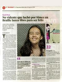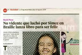 No vidente que luchó por Simce en Braile lanza libro para ser feliz [artículo] / Martín Romero E. La Segunda (Diario : Santiago, Chile)-- ago. 13, 2014, p. 24 .