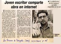 Joven escritor comparte obra en internet. [artículo] La Prensa de Tocopilla (Diario : Antofagasta, Chile)-- abr. 2, 2001, p. 35. .
