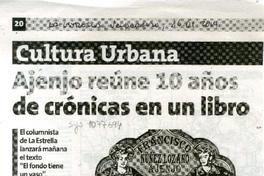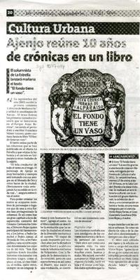 Ajenjo reúne 10 años de crónicas en un libro el columnista de la Estrella lanzará mañana el texto "El fondo tiene un vaso". [artículo] :