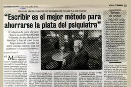 "Escribir es el mejor método para ahorrarse la plata del psiquiatra" [artículo] / Alfonso Cortínez T. Las Últimas Noticias (Diario : Santiago, Chile)-- oct. 29, 2005, p. 35. .