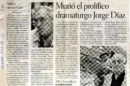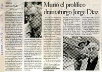 Murió el prolífico dramaturgo Jorge Díaz [artículo] Marietta Santi.