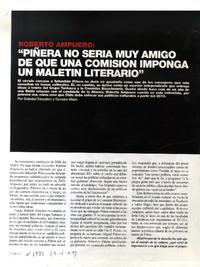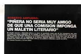 "Piñera no seria muy amigo de que una comisión imponga un maletín literario" [entrevista] [artículo] Soledad Escudero y Gonzalo Maier.