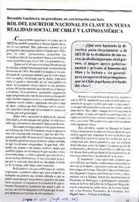 Rol de escritor nacional es clave en nueva realidad social de Chile y Latinoamérica. [artículo] SAFO (Revista : Santiago, Chile)-- no. 102 (sept.-oct. 2006), p. 11. .