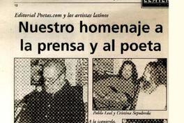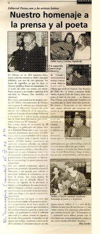 Nuestro homenaje a la prensa y al poeta [artículo] / Elías Letelier. El Mensajero (Diario : Santiago, Chile)-- abr. 15, 2002, p. 12. .
