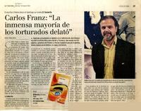 Carlos Franz: "La inmensa mayoría de los torturados delató" [artículo] / Andrés Gómez Bravo. La Tercera de la Hora (Diario : Santiago, Chile)-- mayo 11, 2005, p. 37. .