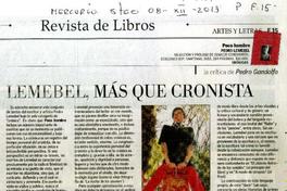 Lemebel, más que cronista [artículo] / Pedro Gandolfo. El Mercurio (Diario : Santiago, Chile)-- dic. 8, 2013, p. F15. .