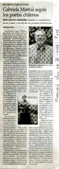 Gabriela Mistral según los poetas chilenos [artículo] / Francisco Véjar. El Mercurio (Diario : Santiago, Chile)-- dic. 8, 2013, p. A19. .