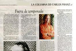 Fuera de temporada [artículo] / Carlos Franz. La Segunda (Diario : Santiago, Chile)-- nov. 16, 2013, p. 27. .