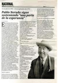 Pablo Neruda sigue sosteniendo "una parte de la esperanza" [artículo] Fernando Quilodrán.