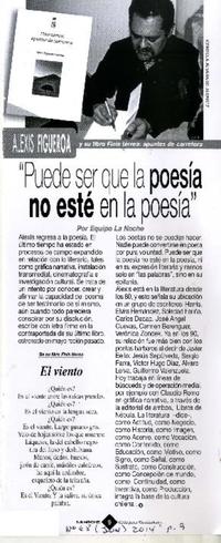 "Puede ser que la poesía no esté en la poesía" [artículo] / La Noche (Revista : Santiago, Chile)-- n° 68 (jul) 2014, p. 9 .