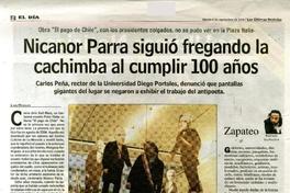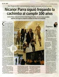 Nicanor Parra siguió fregando la cachimba al cumplir 100 años [artículo] / Juan Morales Las Últimas Noticias (Diario : Santiago, Chile)-- sep. 6, 2014, p. 2 .