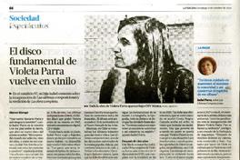 El disco fundamental de Violeta Parra vuelve en vinilo [artículo] / Marcos Moraga La Tercera (Diario : Santiago, Chile)-- oct. 5, 2014, p. 66 .