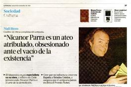 "Nicanor Parra es un ateo atribulado, obsesionado ante el vacío de la existencia" [artículo] Javier García