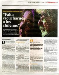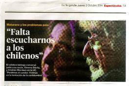 Maturana y los problemas país: "Falta escucharnos a los chilenos" [artículo] / Juan Carlos Ramírez F. La Segunda (Diario : Santiago, Chile)-- oct. 2, 2014, p. 25 .