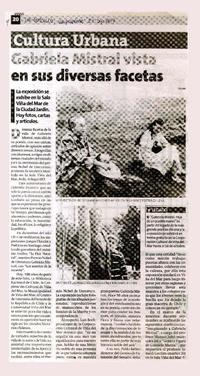 Gabriela Mistral vista en sus diversas facetas [artículo] / La Estrella (Diario : Valparaíso, Chile)-- sep. 24, 2014, p. 20 .