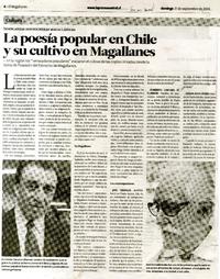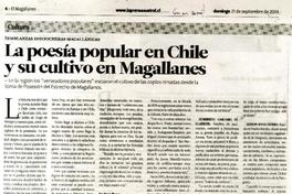 La poesía popular en Chile y su cultivo en Magallanes [artículo] / El Magallanes (Diario : Punta Arenas, Chile)-- sep. 21, 2014, p. 6-7 (En el Sofá) .