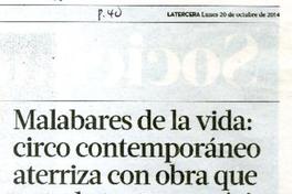 Malabares de la vida: circo contemporáneo aterriza con obra que mezcla teatro y música [artículo] / Pedro Bahamondes Ch. La Tercera (Diario : Santiago, Chile) -- oct. 20, 2014, p. 40 .