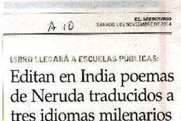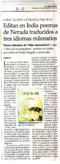 Editan en India poemas de Neruda traducidos a tres idiomas milenarios [artículo] / El Mercurio (Diario : Santiago, Chile)-- nov. 1, 2014, p. A10 .