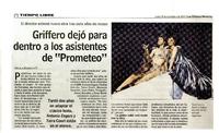 Griffero dejó para dentro a los asistentes de "Prometeo" [artículo] / Natalia Bobadilla Z. Las Últimas Noticias (Diario : Santiago, Chile)-- nov. 10, 2014, p. 48 .