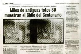 Miles de antiguas fotos 3D muestran el Chile del Centenario [artículo] / Fabián Llanca La Últimas Noticias (Diario : Santiago, Chile)-- nov. 12, 2014, p. 46 .
