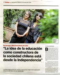 La idea de la educacióm como constructora de la sociedad chilena está desde la Independencia [artículo] / Rebeca Araya Basualto La Segunda (Diario : Santiago, Chile)-- nov. 22, 2014, p. 5-6 .