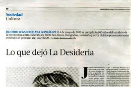 Lo que dejó La Desideria [artículo] / Pedro Bahamondes Ch. La Tercera (Diario : Santiago, Chile)-- nov. 23, 2014, p. 66-67 .