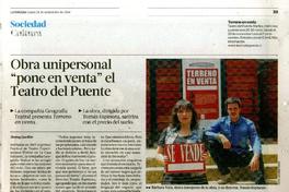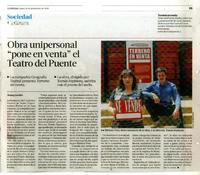 Obra unipersonal "pone en venta" el Teatro del Puente [artículo] / Jimmy Gavilán La Tercera (Diario : Santiago, Chile)-- nov. 24, 2014, p. 33 .