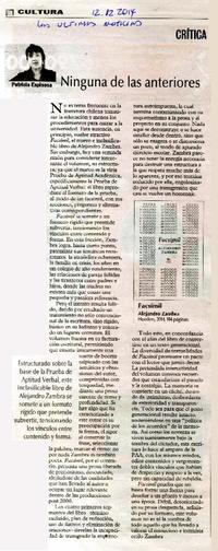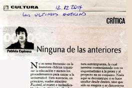 Ninguna de las anteriores [artículo] / Patricia Espinosa Las Últimas Noticias (Diario : Santiago, Chile)-- dic. 12, 2014, p. 98 .