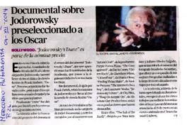 Documental sobre Jodorowsky preselecionado a los Oscar [artículo] / El Mercurio de Antofagasta (Diario : Antofagasta, Chile)-- dic. 4, 2014, p. 26 .