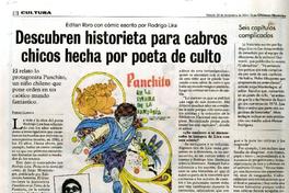 Descubren historieta para cabros chicos hecha por poeta de culto [artículo] / Fabián Llanca Las Últimas Noticias (Diario : Santiago, Chile)-- dic. 20, 2014, p. 68 .