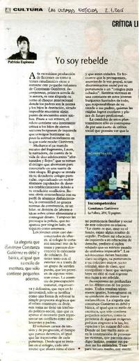 Yo soy rebelde [artículo] / Patricia Espinosa Las Últimas Noticias (Diario : Santiago, Chile)-- dic. 2, 2015, p. 46 .