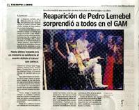 Reaparición de Pedro Lemebel sorprendió a todos en el Gam [artículo] / R. Cantillana Las Últimas Noticias (Diario : Santiago, Chile) ene. 8, 2015, p. 30 .
