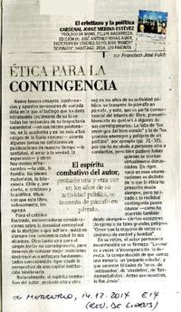 Ética para la contingencia [artículo] / Francisco José Folch El Mercurio (Diario : Santiago, Chile) dic. 14, 2014, p. E14 (Revista de Libros) .