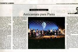 Anticantata para Parra [artículo] / Mario Córdova Las Últimas Noticias (Diario : Santiago, Chile) dic. 13, 2014, p. 90 .