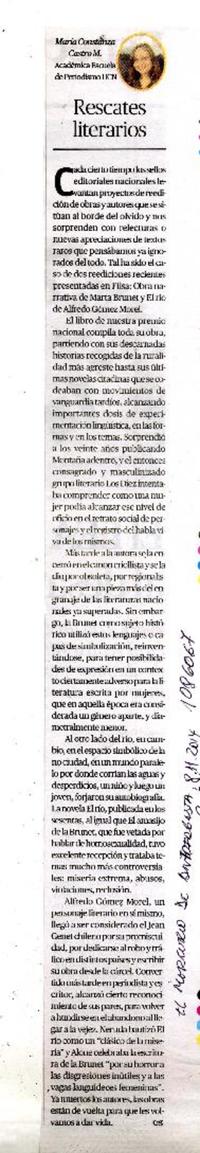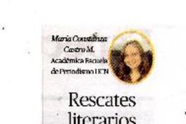 Rescates literarios [artículo] / María Constanza Castro M. El Mercurio de Antofagasta (Diario : Antofagasta, Chile) noviembre 8, 2014, página 34 .