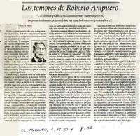 Los temores de Roberto Ampuero [artículo] / Carlos Peña El Mercurio (Diario : Santiago, Chile) diciembre 8, 2014, página A2 .