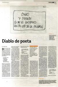 Diablo de poeta [artículo] / Carlos Franz El Mercurio (Diario : Antofagasta, Chile) septiembre 5, 2014, página 25 (KU) El Sur (Diario : Concepción, Chile) -- septiembre 5, 2014, página 25 (KU) .