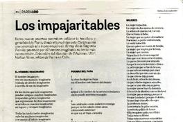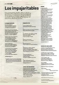 Los impajaritables [artículo] El Mercurio (Diario : Antofagasta, Chile) septiembre 5, 2014, página 34-35 (KU) El Sur (Diario : Concepción, Chile) septiembre 5, 2014, página 34-35 (KU) .