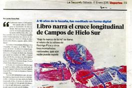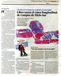 Libro narra el cruce longitudinal de Campos de Hielo Sur [artículo] / Loreto Flores Ruiz La Segunda (Diario : Santiago, Chile) enero 17, 2015, página 23 .