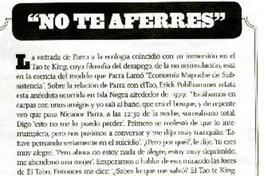 "No te aferres" [artículo] The Clinic (Diario : Santiago, Chile) número 560, Septiembre 4, 2014, página 20 .
