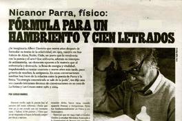 Nicanor Parra, físico: Fórmula para un hambriento y cien letrados [artículo] Sergio Marras