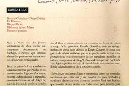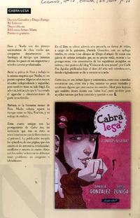 Cabra lesa [artículo] El Mercurio de Antofagasta (Diario : Antofagasta, Chile) diciembre 28, 2014, página 30 (Domingo) Leamos (Revista : Chillán, Chile) número 12 (diciembre) 2014, página 10 .