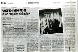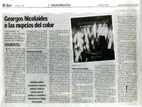 Georgos Nicolaides o las nupcias del color [artículo] / Tulio Mendoza Belio El Sur (Diario : Concepción, Chile) diciembre 22, 2014, página 14 .