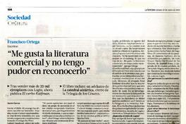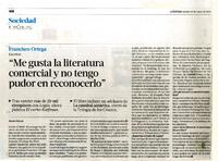 "Me gusta la literatura comercial y no tengo pudor en reconocerlo" [artículo] / Javier García. La Tercera de La Hora (Diario : Santiago, Chile)-- ene. 10, 2015, p. 106-107. .