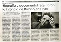 Biografía y documental registrarán la infancia de Bolaño en Chile. [artículo] La Tribuna (Diario : Los Ángeles, Chile)-- abr. 20, 2012, p. 22. .