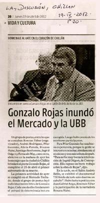 Gonzalo Rojas inundó el Mercado y la UBB. [artículo] La Discusión (Diario : Chillán, Chile)-- abr. 19, 2012, p. 20. .