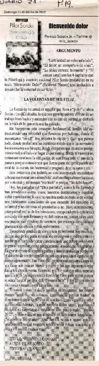 Bienvenido dolor [artículo] / Patricio Sesnich Jr. Diario 21 (Diario : Santiago, Chile)-- mar. 25, 2012, p. 19. .