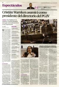Cristián Warnken asumirá como presidente del directorio del PCdV [entrevista] [artículo] / Flor Arbulu. El Mercurio (Diario : Valparaíso, Chile)-- feb. 1, 2015, p. 26. .