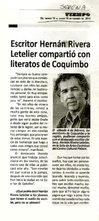 Escritor Hernán Rivera Letelier compartió con literatos en Coquimbo [entrevista]. [artículo] El Día (Diario : La Serena, Chile)-- feb. 10 al 16, 2012, p. 14. .